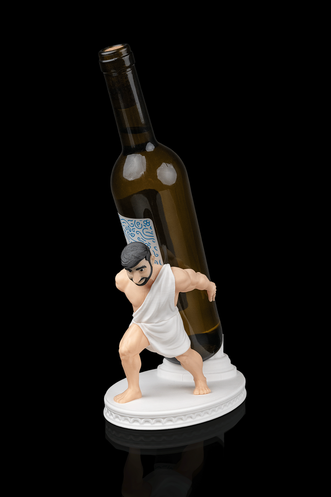Imagine your guests’ reaction when your wine bottle is being held by… you as a Greek god.